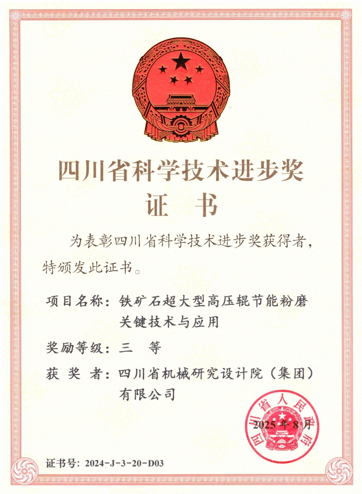 近日,2024年度四川省科學技術獎勵大會在成都舉行,川機集團參與的“電子裝聯關鍵精密件數智化制造技術及應用”項目和“鐵礦石超大型高壓輥節能粉磨關鍵技術與應用”項...